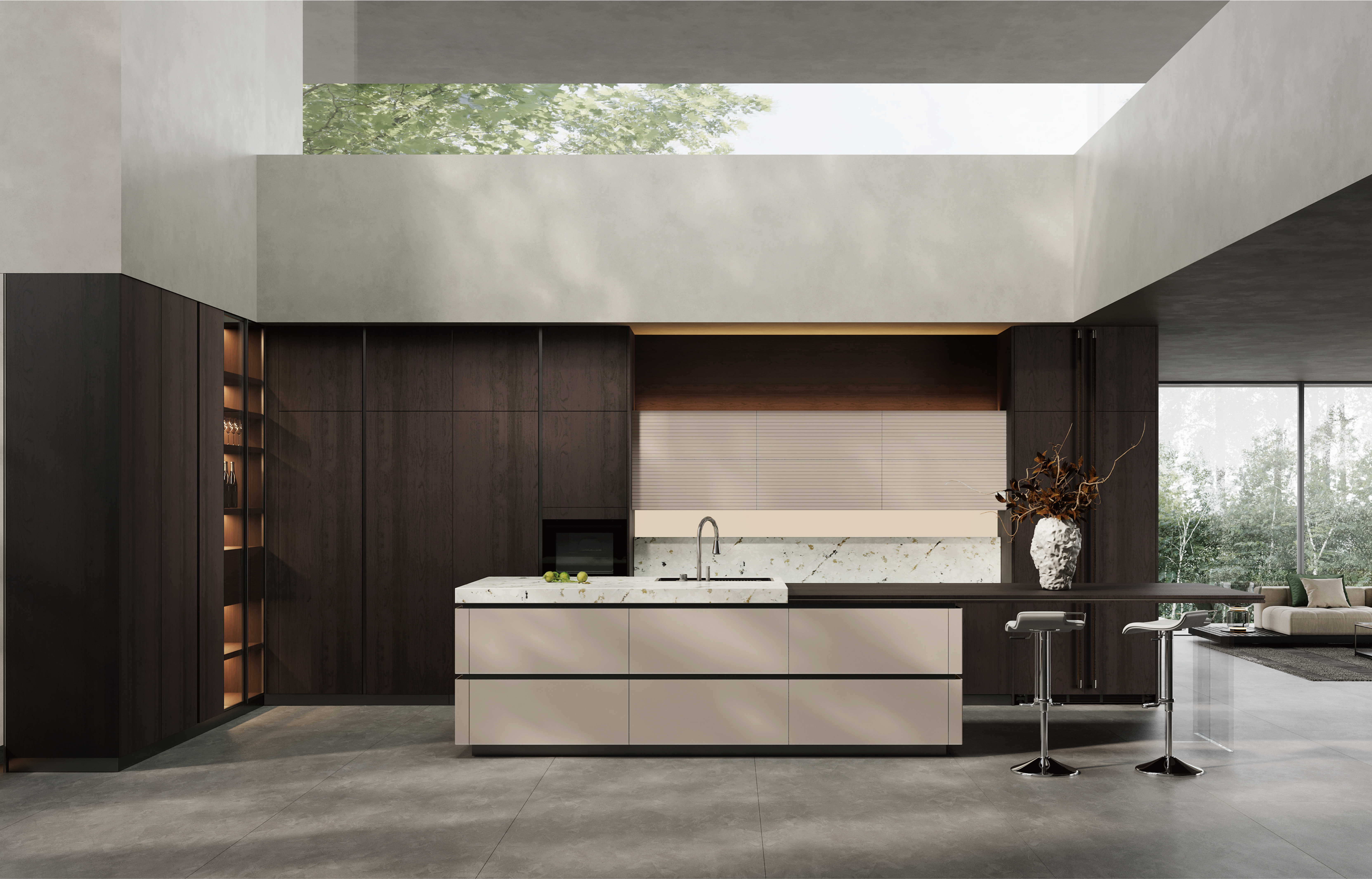 通过英国上市公司365厨柜量体裁柜,定制出适合主厨下厨的烹饪区和洗涤区的舒适高度。